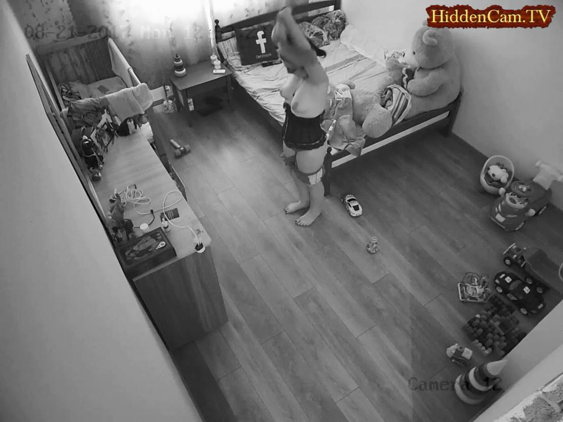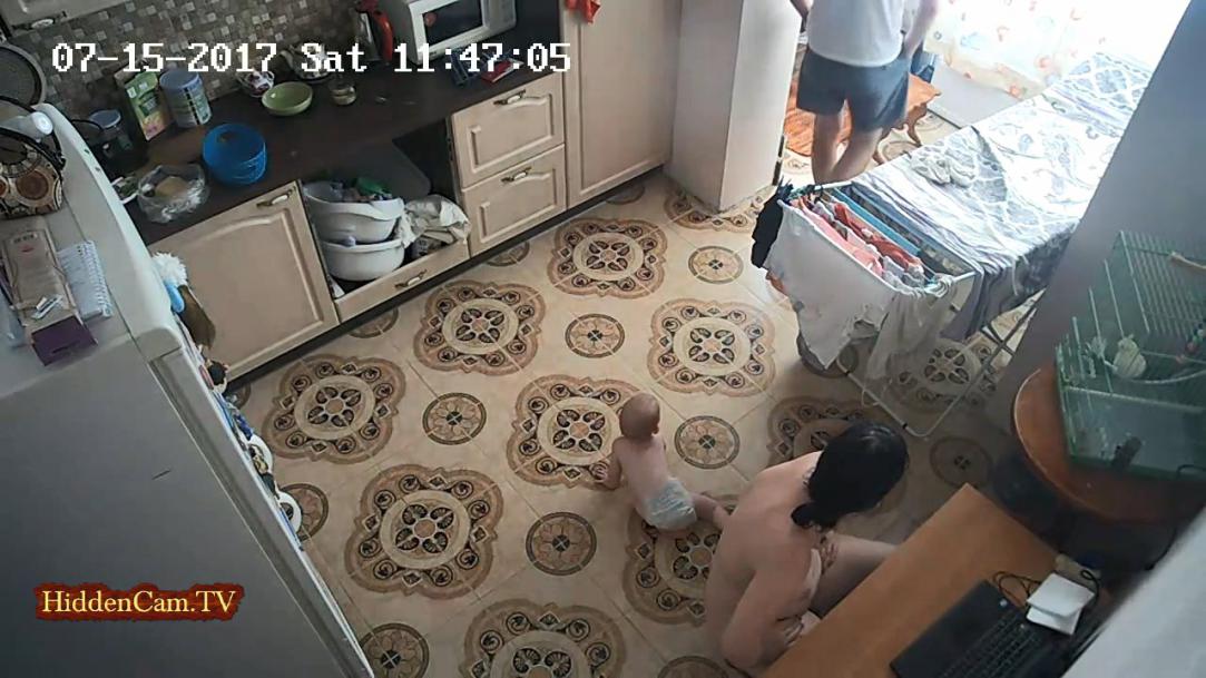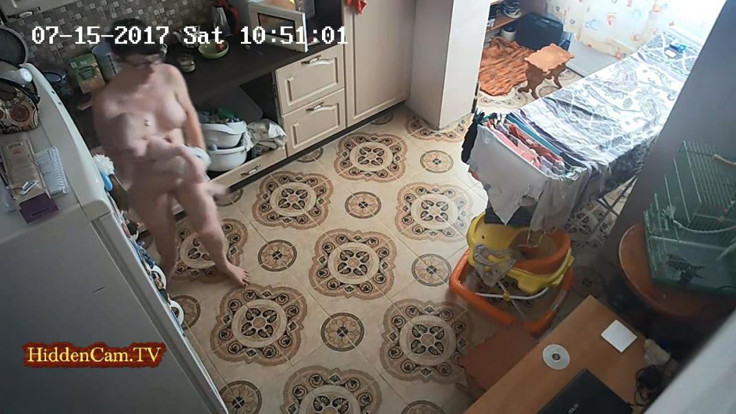Video hidden camera, naked mom in the kitchen (real family)